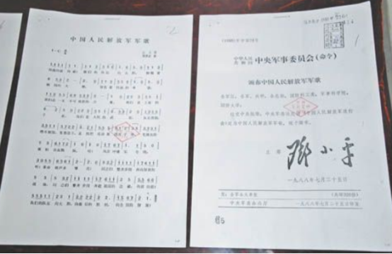 中央军委1988年第24号命令:颁布中国人民解放军军歌(现存于辛集市公木纪念馆)