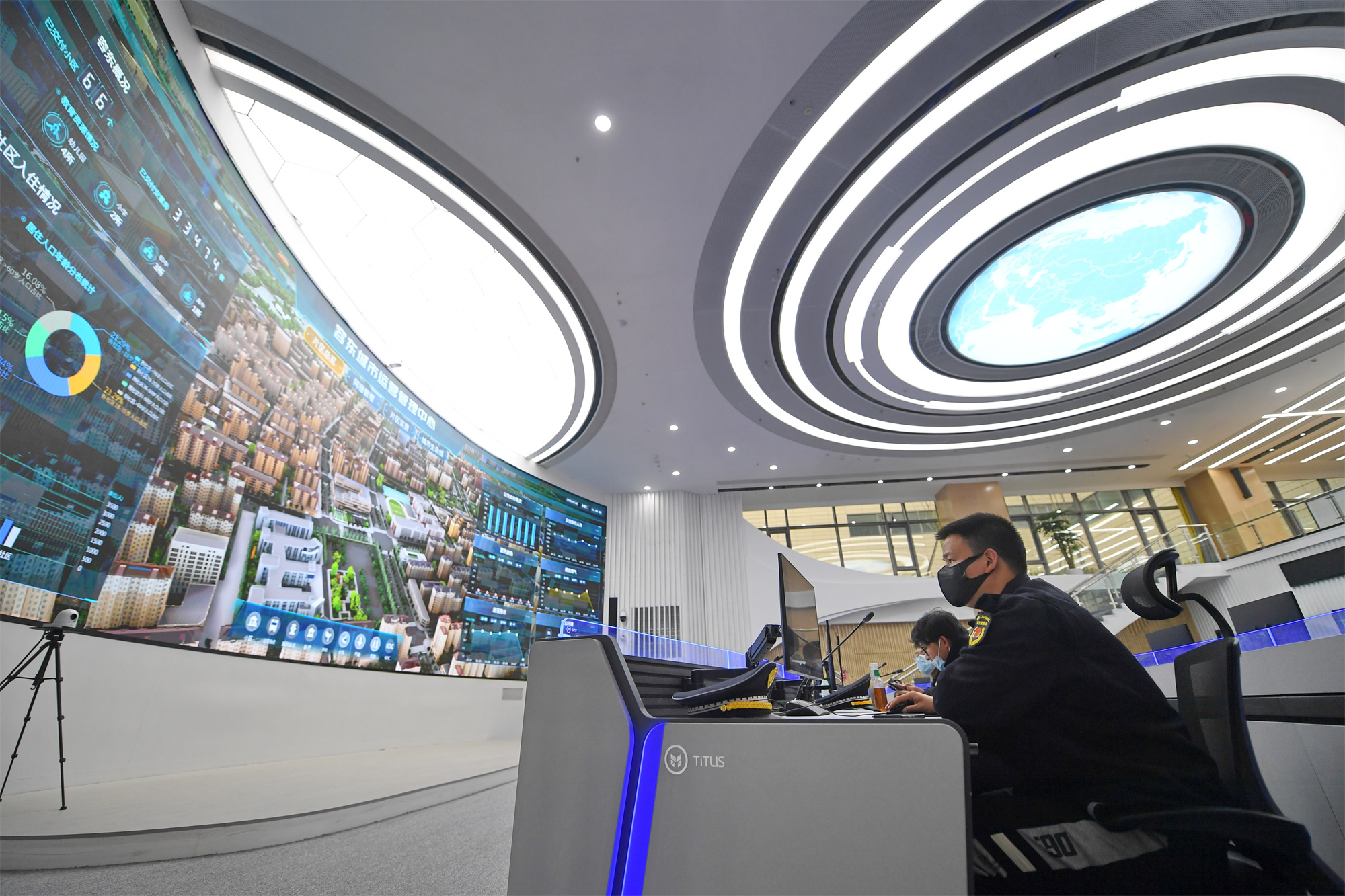 2022年3月29日,工作人员在雄安新区容东城市运营管理中心监管平台工作。新华社记者 朱旭东 摄
