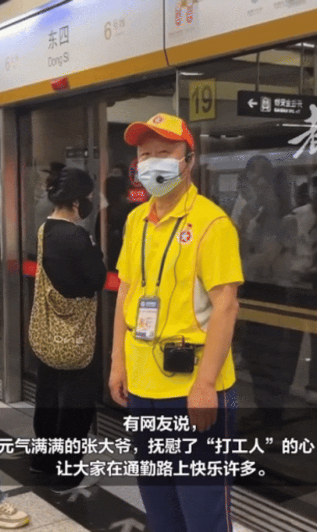 “早上好!快乐星期一!”“快乐星期三,开心去上班!”“快乐星期四,距周末还有一天!”“下趟车人少,一分钟就到”……在北京地铁6号线东四站,早晚高峰期间,64岁的公共文明引导员张立文都以幽默问好的方式引导客流,给乘客带来了快乐,也送去了温暖。