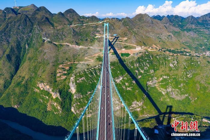 9月28日,世界第一高桥——贵州六枝至安龙高速公路花江峡谷大桥正式通车运营。(无人机照片) 中新社发 龙建睿 摄