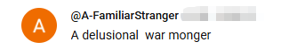 网友@A-FamiliarStranger表示,高市早苗是“一个痴心妄想的战争贩子。”
