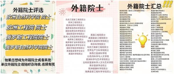 中介在社交媒体的宣传信息,数十家科学院可供申报外籍院士。图据报道