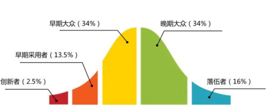 其实可以不用焦虑,就像罗杰斯的创新扩散曲线所说,OpenClaw现在还处在创新者和早期采用者的实验期,距离主流普及还有很长一段路。技术进步的速度很快,但普及的速度远比我们想象的慢,就像当年的智能手机,不会因为你晚用一年,就被时代抛弃。